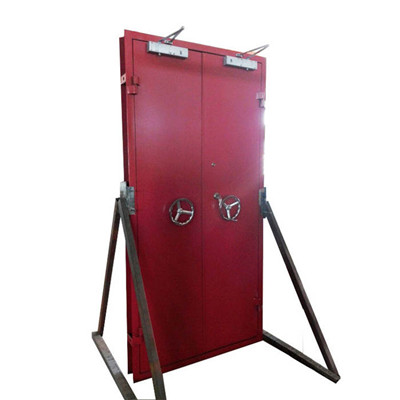 旭彩网 4.2钢制B型抗爆门的门扇采用型钢做内部框架,内外两侧包镀锌干板或纤维水泥复合钢板,中间填岩棉或陶瓷棉。门扇有单开门、双开门和字母门三种形式。